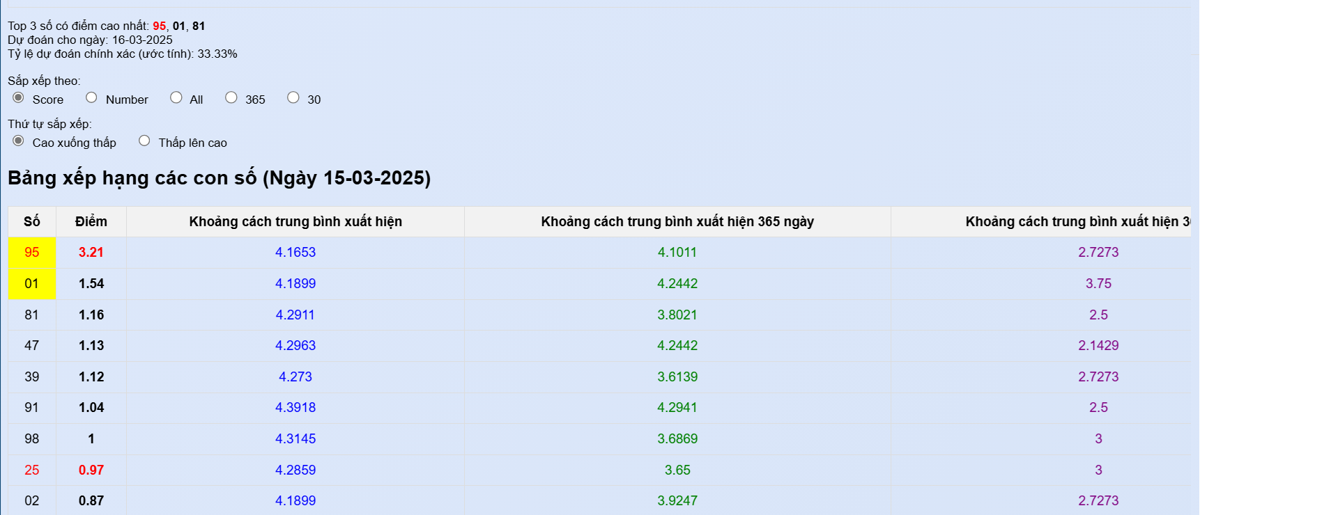 Sau khi xong, các bạn bấm tính toán để thuật toán tính toán sắp xếp các con số theo số điểm tương ứng phía dưới bảng.